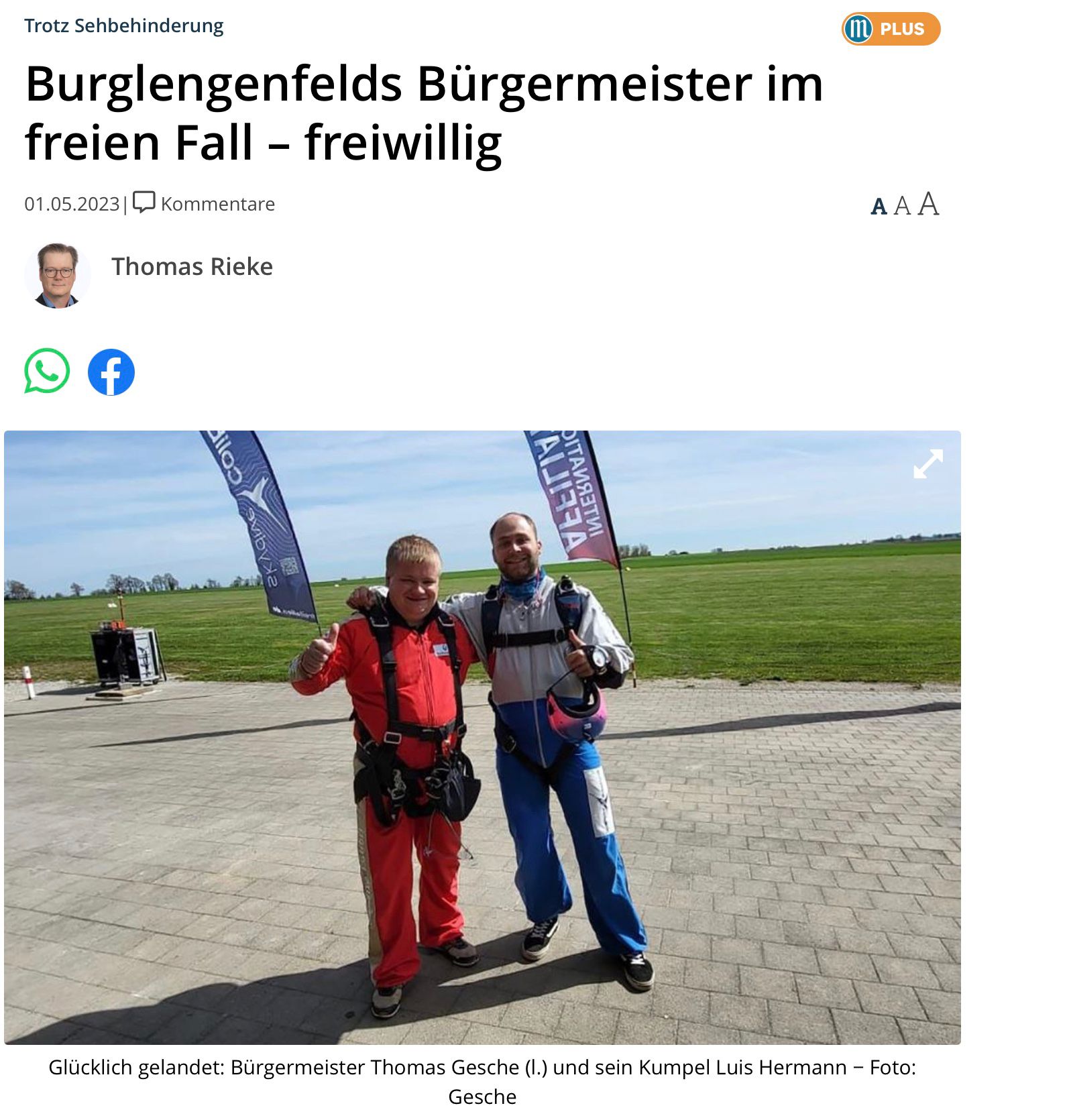 Mut kennt keine Grenzen: Fallschirmsprung mit Bürgermeister Thomas Gesche